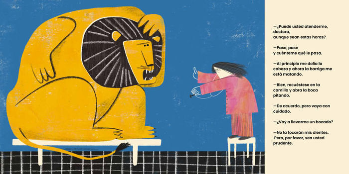 Un divertidísimo libro álbum lleno de pingüinos y otras criaturas que salen de la barriga de un león tragón. La doctora Durrell se encuentra en la puerta de su consulta a un enorme león con un terrible dolor de estómago. La doctora se enfrenta a las fauces del felino con valentía y la intención de ayudarlo. Así descubrimos un desfile de personajes y situaciones imposibles llenas de humor y pingüinos, muchos pingüinos. Un libro divertidísimo que nos pone en la situación de una doctora que ha de enfrentarse a un paciente complicado. Pablo Albo muestra con maestría su talento como escritor. Lenguaje sencillo, estructuras con ritmo, y giros humorísticos que conectan con la infancia y sus intereses. Anna Font crea personajes y escenarios llenos de riqueza visual y sensibilidad plástica.
